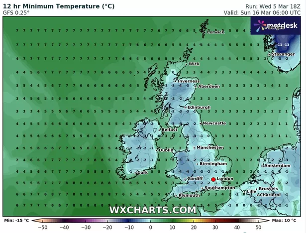 造成冰雪的原因是平流层突然变暖事件,该事件将于3月15日星期六袭击英国。从那里开始,气温可能会降至零下5摄氏度,而几乎整个国家的气温都在0摄氏度以下。
