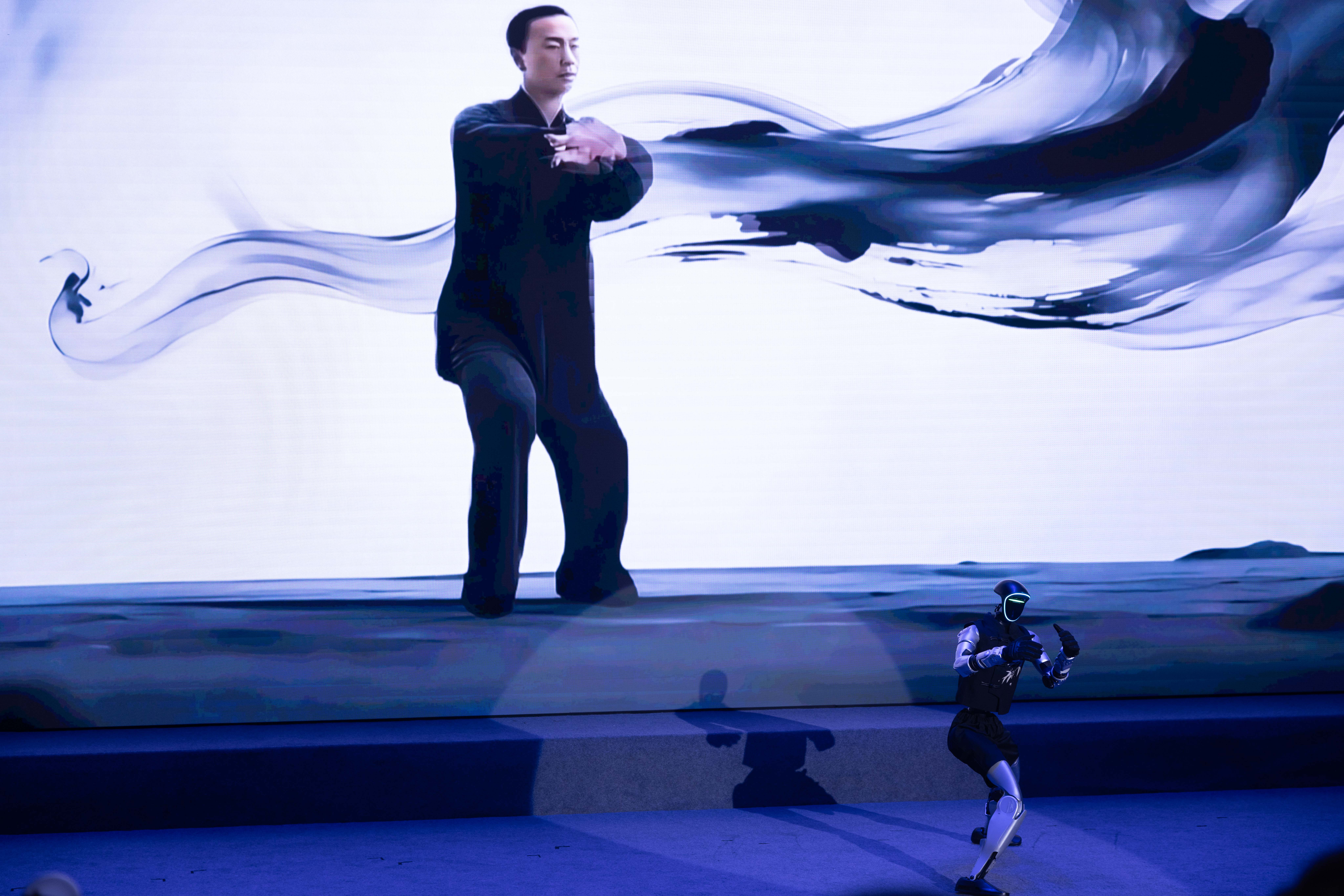 展区内,人形机器人一套行云流水的武术表演吸引众多目光。依托中国电信强大的云计算能力和TeleAI具身仿真平台,系统通过大规模并行仿真训练,让机器人自主学习动作控制。结合星辰大模型和强化学习算法,机器人能够不断优化动作的稳定性和精确性,首次实现“分钟级”武术表演,同时达成AIGC人物生成和物理机器人表现的高度一致。