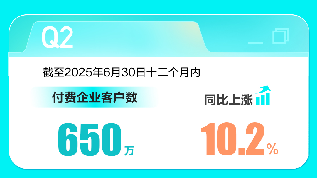 招聘求职供求关系的改善,也带动季度付费发生向好的变化。截至2025年6月30日止的十二个月内,公司付费企业客户数为650万,同比上涨10.2%。
