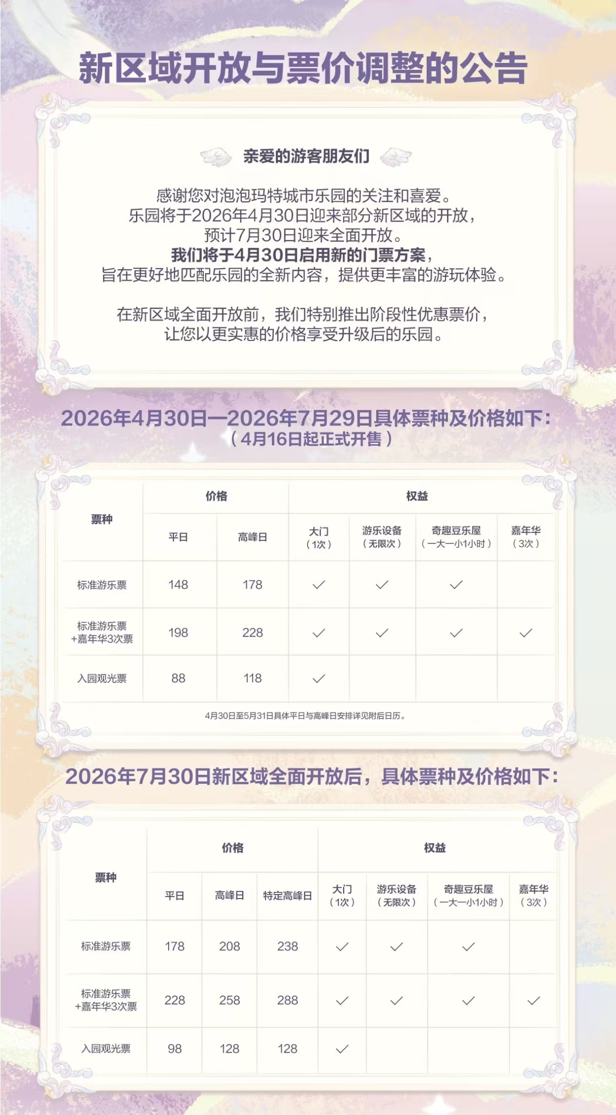 3月30日,泡泡玛特城市乐园发布调价公告称,将于2026年4月30日迎来部分新区域的开放,到时将启用...