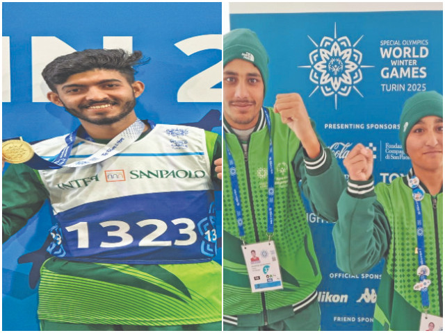 12日,在意大利都灵举行的第12届世界冬季特殊奥林匹克运动会上,巴基斯坦运动员穆尼布·乌尔·拉赫曼和...