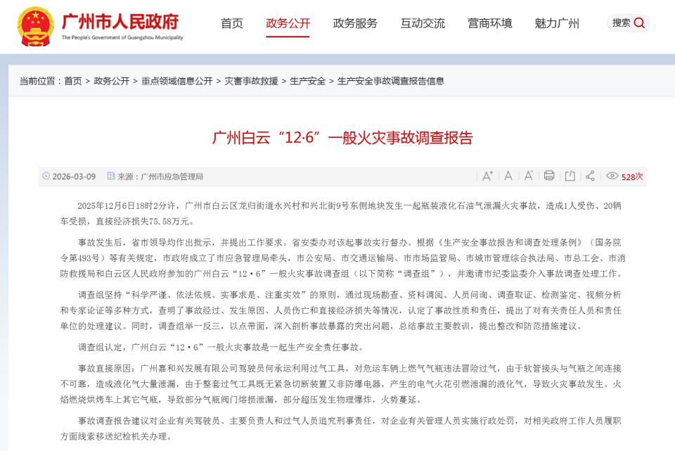 近期广东省广州市人民政府公布一起事故调查报告2025年12月6日18时02分许广州市白云区龙归街道永...