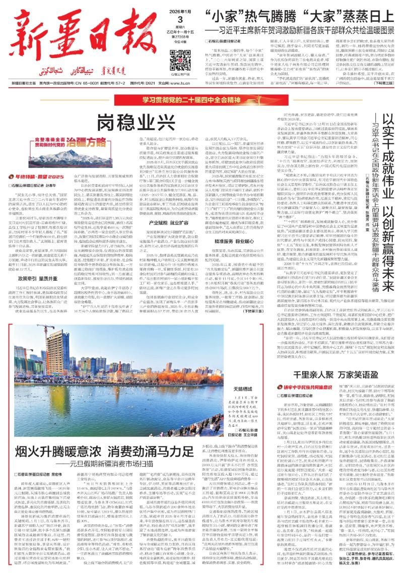 新疆日报1月3日【A01版●要闻】石榴云/新疆日报记者赵春华"民生无小事,枝叶总关情。&q...