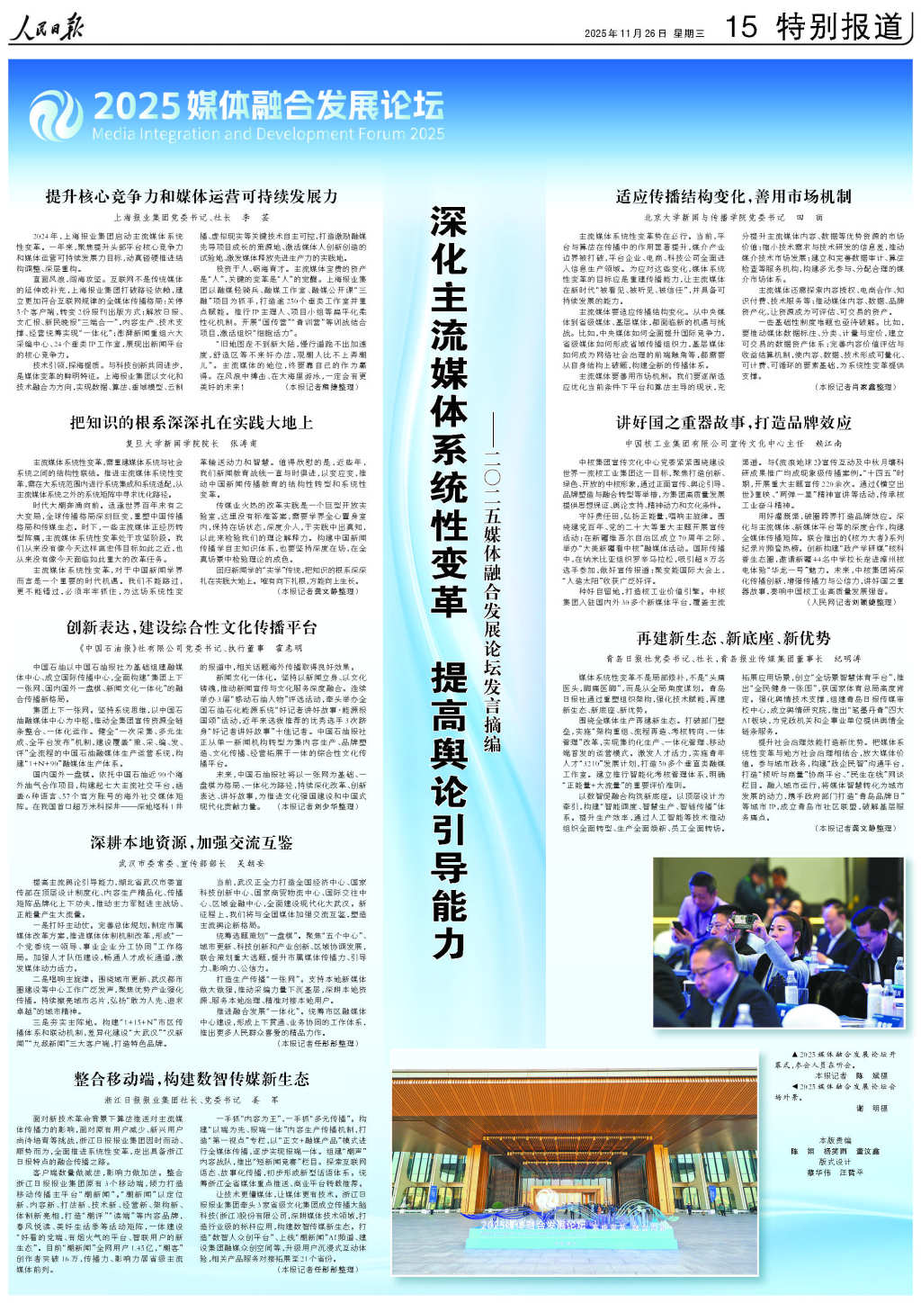 深化主流媒体系统性变革,提高舆论引导能力——2025媒体融合发展论坛发言摘编资讯