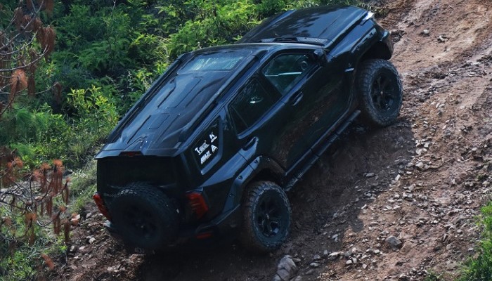 外观方面,坦克400燃油版保留标志性风格,多边形日行灯与横向镀铬中网构成前脸视觉重心,外扩轮眉嵌入外露铆钉强化硬核气质。车尾半裸露式外挂备胎与侧开电吸尾门(带破冰功能)兼顾实用性与设计感。为提升越野拓展性,燃油版将插混车型的伸缩踏板改为固定式侧踏,并缩小天窗尺寸以适配车顶载物平台安装需求。接近角33度、纵向通过角22.5度、最小离地间隙235毫米的通过性参数较Hi4-T版小幅提升。