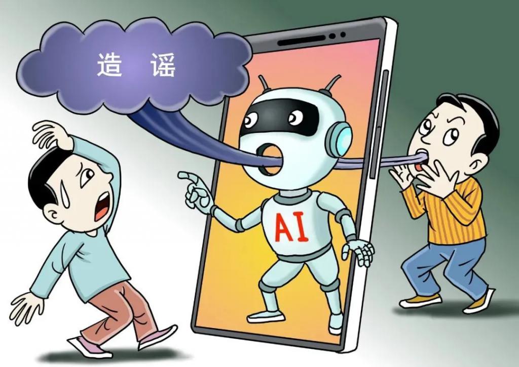 漫画:AI 造谣门槛低、危害大 图源:视觉中国