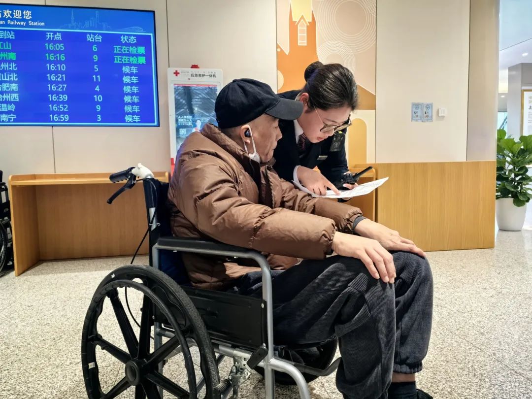 候车室设置充电吧台和座椅充电扶手等设备,满足旅客充电需求。聚焦建设老年友好型车站,在各站区增设“心尚”服务管家,为老年旅客提供咨询引导和重点帮扶。各站区售票处开设团体接待服务专窗,“心尚”服务工作室配备老花镜、放大镜、出行提示卡等助老用品。