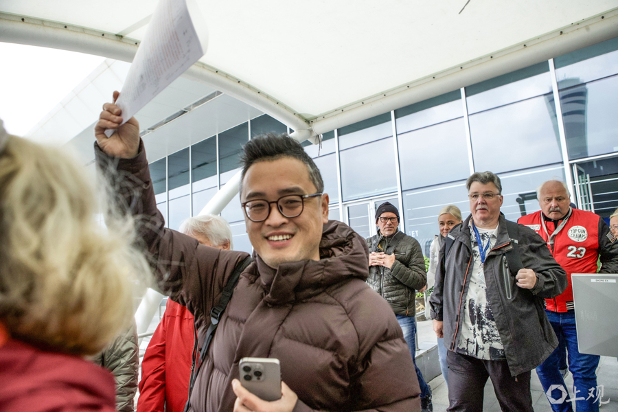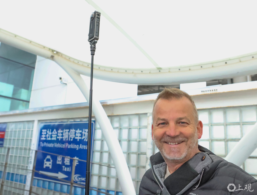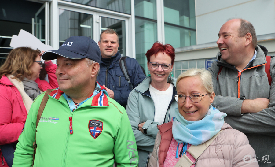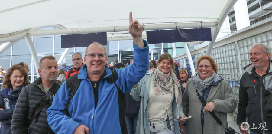 老外自当游客小队长,下船上车游上海。