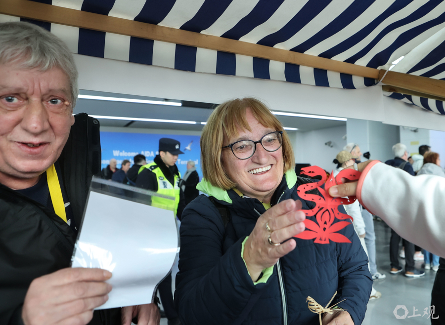 中国剪纸赠游客。
