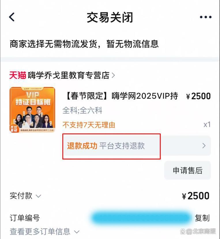 3 月 15 日,北京商报刊发了《2500 元课 " 付了钱就没人管 "!嗨学网被指 " 吃相 " 难看》,报道了苏州的李雪晴(化名)在北京嗨学网教育科技股份有限公司(以下简称 " 嗨学网 ")遭遇的退款难题。