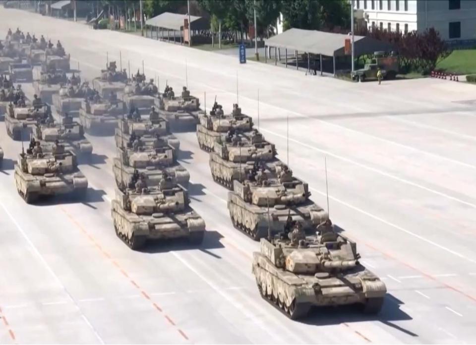 " 九三 " 阅兵中,陆军的 100 坦克和 100 支援战车亮相,二者能够执行远程快速部署、战役目标夺控、战术纵深突击、城市攻防作战、联合火力引导等作战任务。