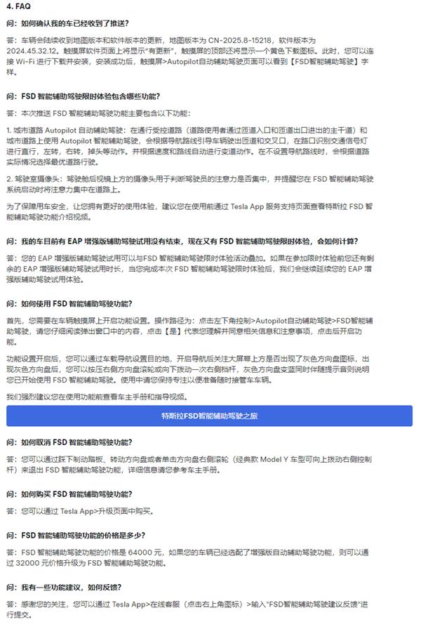 目前 FSD 智能辅助驾驶功能仅在部分车辆上推出,会尽量为适用的车辆推送,但可能因各种因素无法覆盖圆满,请以车端实际开通为准。