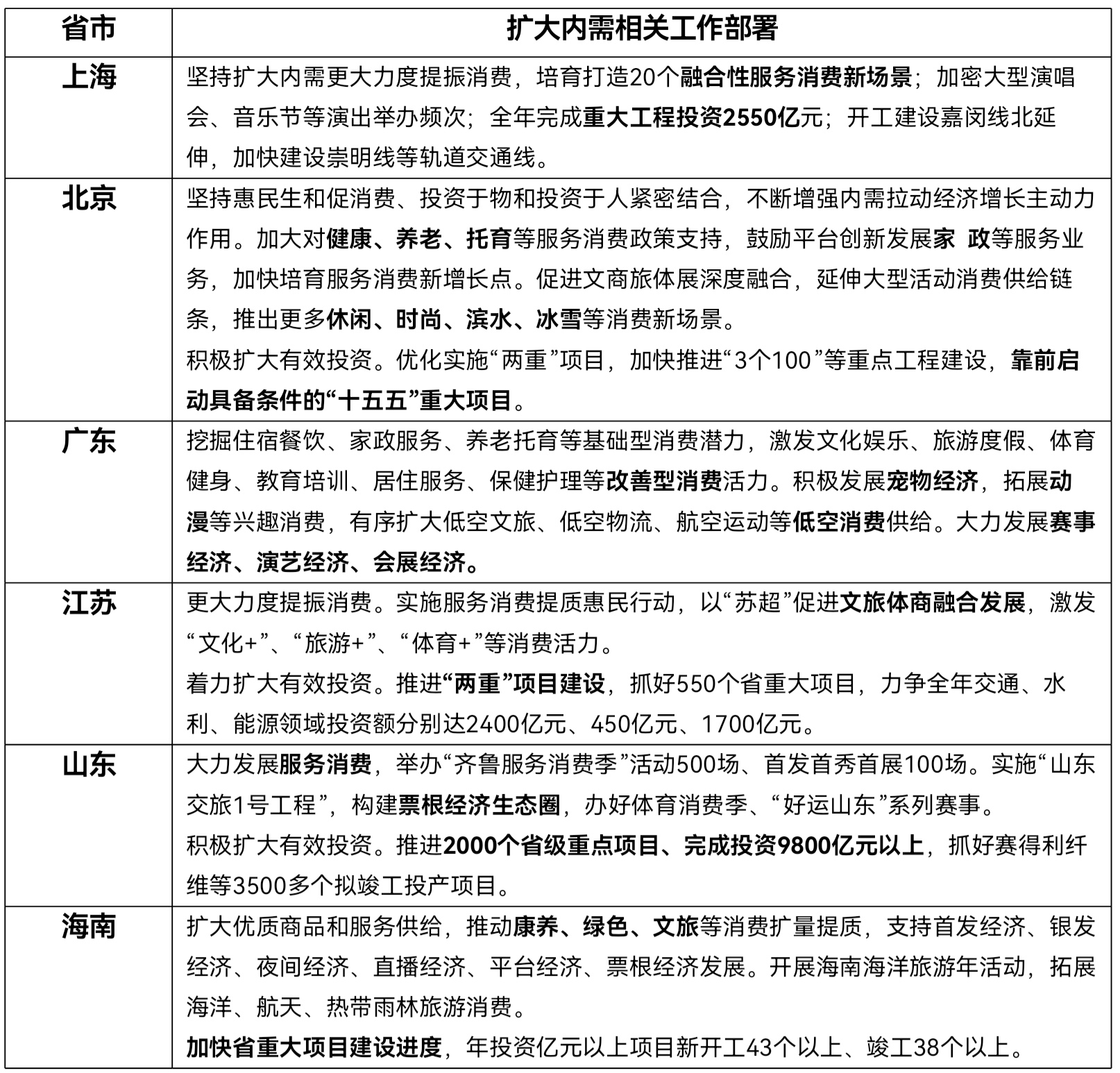 “今年扩内需仍是地方首要任务,并且从传统的实物消费刺激转向实物与服务并重。”赵伟说。