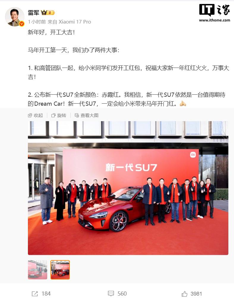 此外,小米创办人,董事长兼 CEO 雷军今日发文,和高管团队一起,给小米同学们发开工红包。
