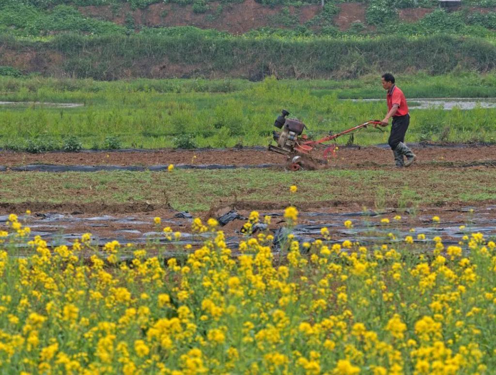 村民在广西南宁市邕宁区蒲庙镇田园里耕作 / 新华社记者 周华 摄