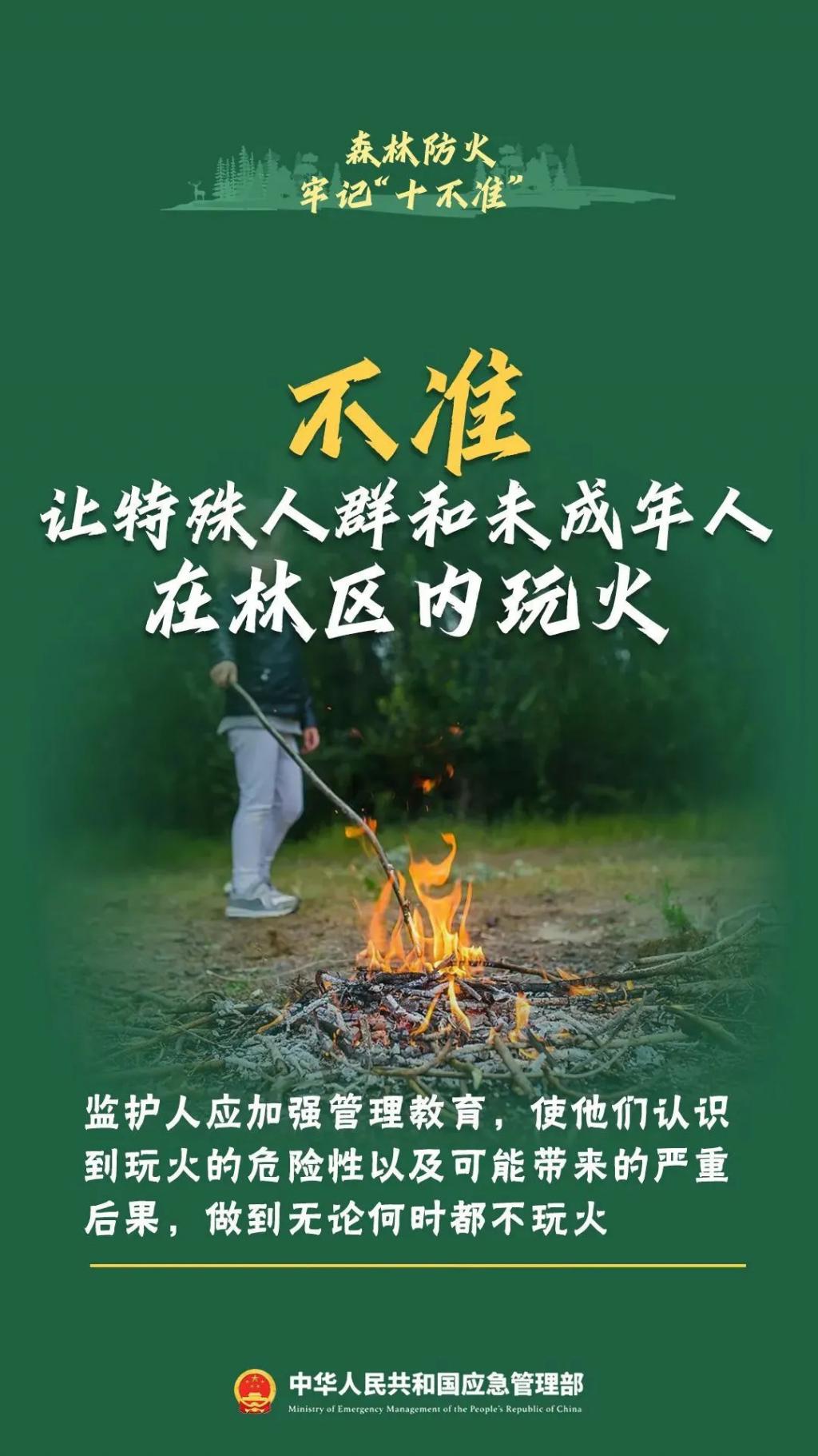 春季是森林火灾的高发期,森林防火,人人有责,增强防火安全意识,严格遵守防火规定,牢记森林防火 " 十不准 "。