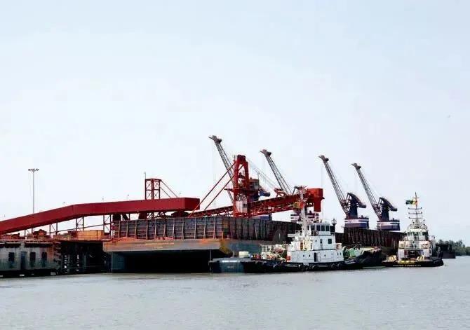 20 万吨级的巨轮常年穿梭于大西洋、好望角、印度洋,将几内亚的红色铝土矿运往滨州套尔河港。