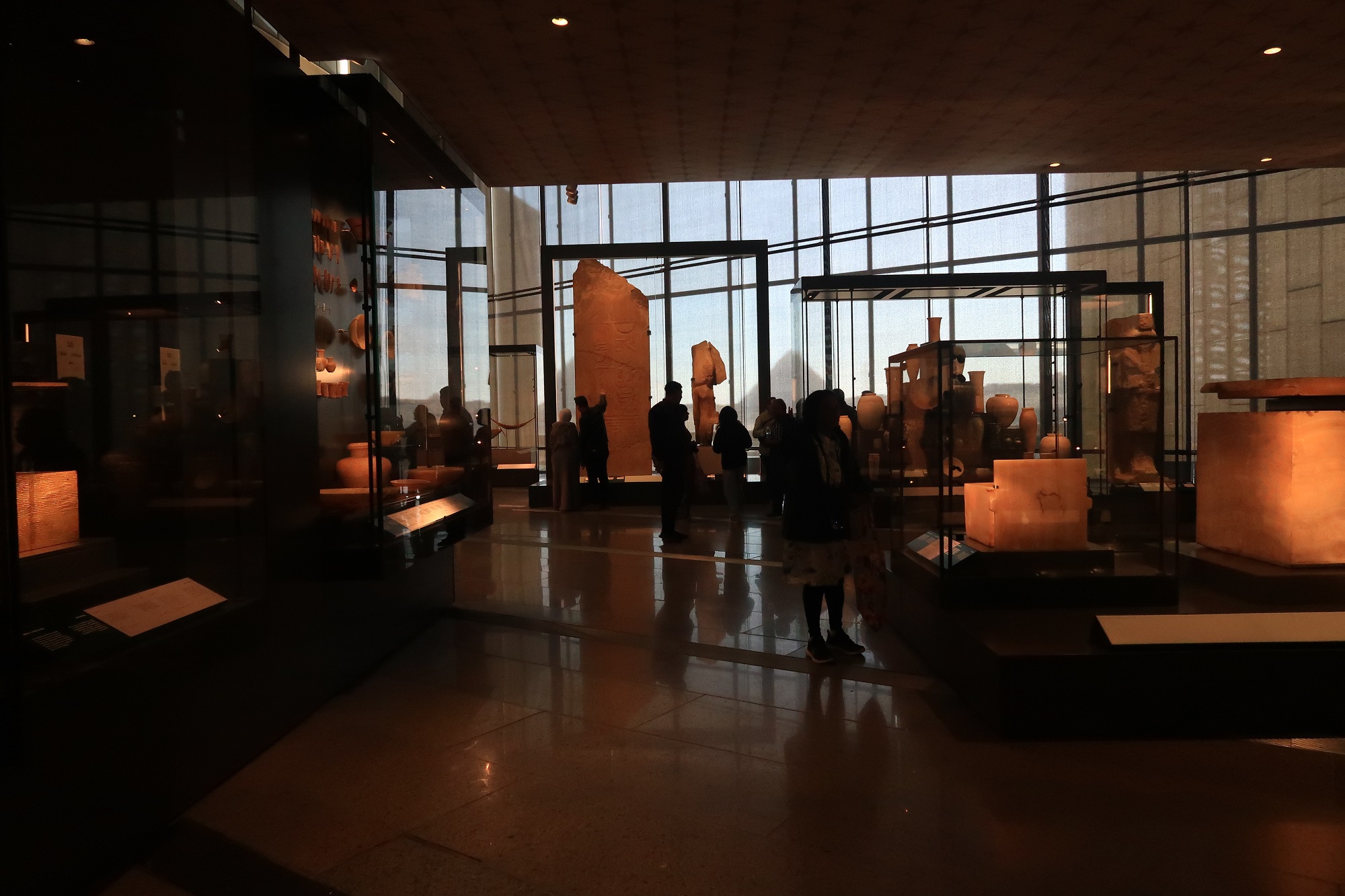 从博物馆的落地窗远眺,吉萨金字塔近在眼前。吉萨金字塔由胡夫、哈夫拉和孟卡拉三座金字塔组成,作为世界七大奇迹之一,它们的存在本身就是一个奇迹。关于其建造方式,至今仍有无数猜想,却始终没有确切答案。那些重达数吨的巨石,如何在没有现代化工具的年代,被精准堆砌成完美的金字塔形态,是古埃及人智慧的结晶。