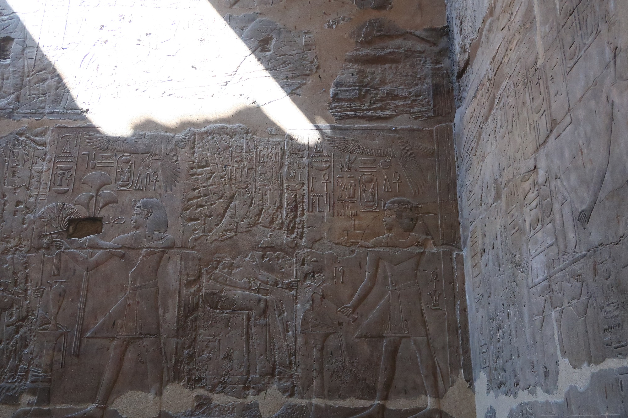 步入其中,两侧由巨石堆砌而成的石柱,拔地而起,每一根柱身上都刻画着创世神话与法老的功绩,历经千年依旧清晰可辨。阳光斜射入柱廊,光影在石柱间跳跃,光斑落在石面上,既有岁月的沧桑,又有生命的灵动。