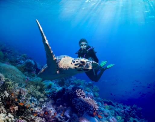 这里最有魅力的莫过于潜水资源。红海海域能见度极高,只需浮在水面,就能领略水下世界。我们早已按捺不住,登上游艇,向着远处的私人小岛驶去。