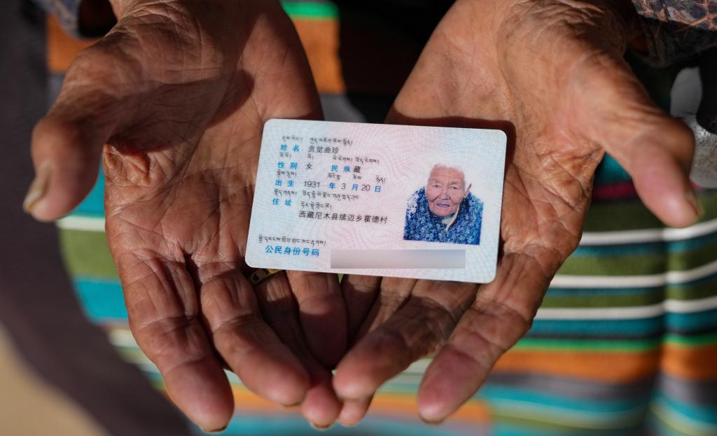 贡觉曲珍的身份证(3 月 6 日摄)。