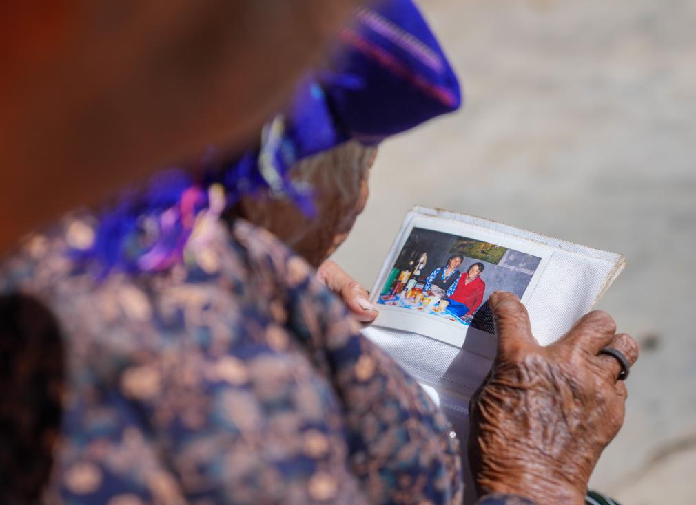 贡觉曲珍在家中翻看相册(3 月 6 日摄)。