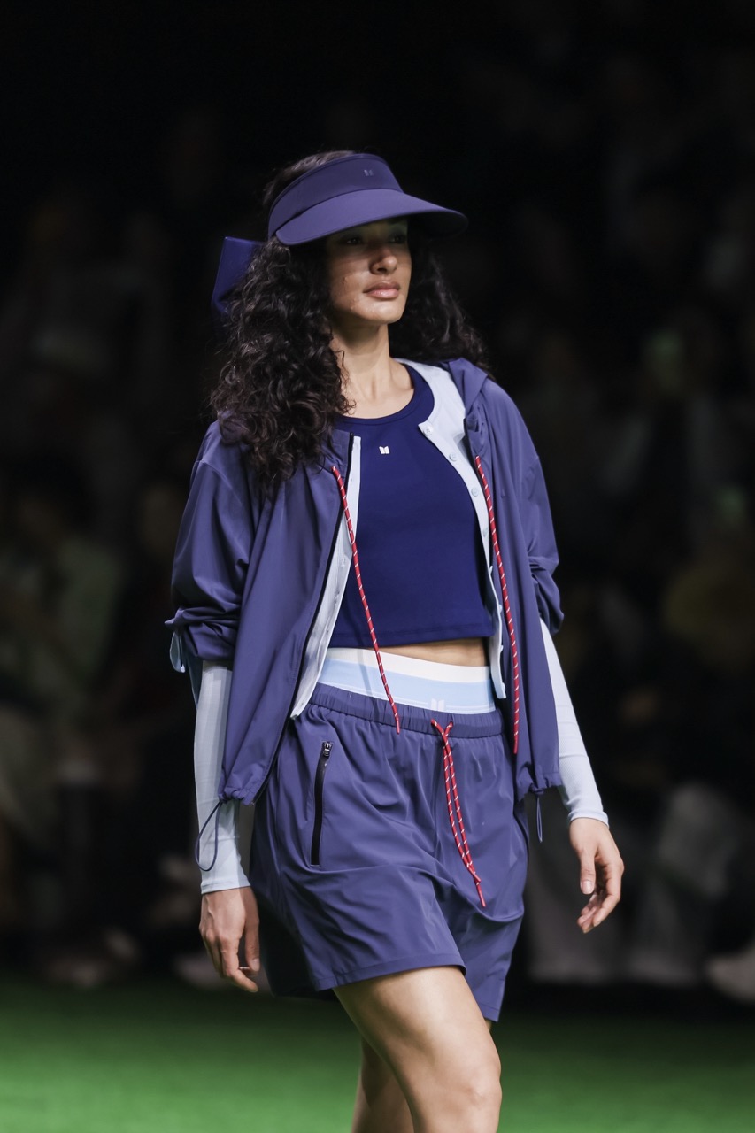 品牌延续原纱防晒科技与凉感面料,将UPF50+功能融入日常廓形之中,强调舒适与利落的平衡。设计上以蝴蝶结元素贯穿,通过运动内搭、leggings与防晒外套的组合,辅以猫跟鞋、球拍等细节,形成“Chic Sport”的轻盈表达。整体系列不再强调技术参数本身,而是将功能转化为更自然的穿着体验,使“防晒”成为一种更日常的存在方式。