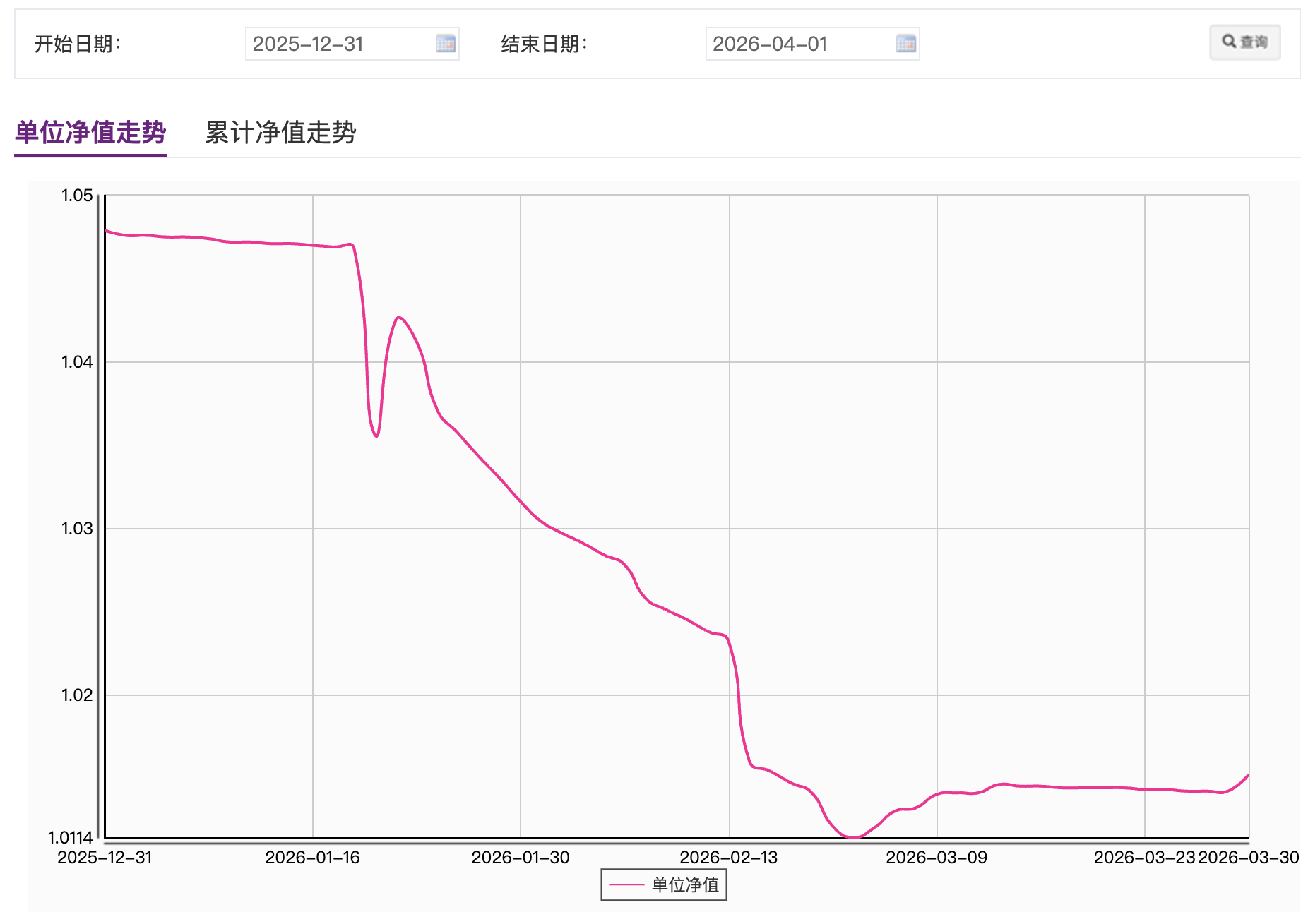 界面新闻记者查询光大理财官网发现,阳光金增利稳健天天购定制(90天最低持有)2号A单位净值自1月20日以来迅速下跌,截至4月1日,今年以来净值回撤幅度约3.12%。官网显示,截至3月30日,该理财产品今年以来年化收益率为-12.7977%。