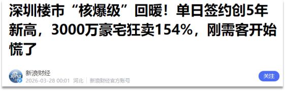 3 月 22 日,深圳二手房单日签约量创下近 5 年最高纪录。