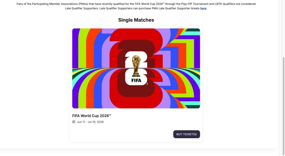 蓝鲸记者实测发现,目前 FIFA 官网已开启购票渠道,用户注册完账号后可在网站内选择相应的比赛。