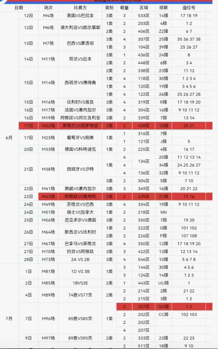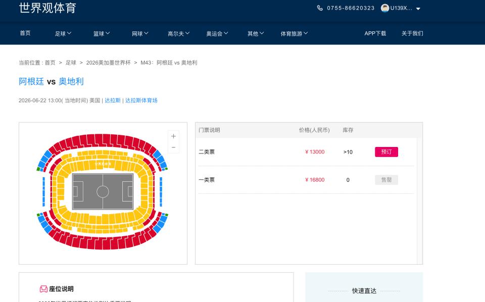 以当地时间 6 月 22 日的小组赛阿根廷对阵奥地利为例,一类票价高达 16800 元,且已显示售罄,二类票价也达到了 13000 元。