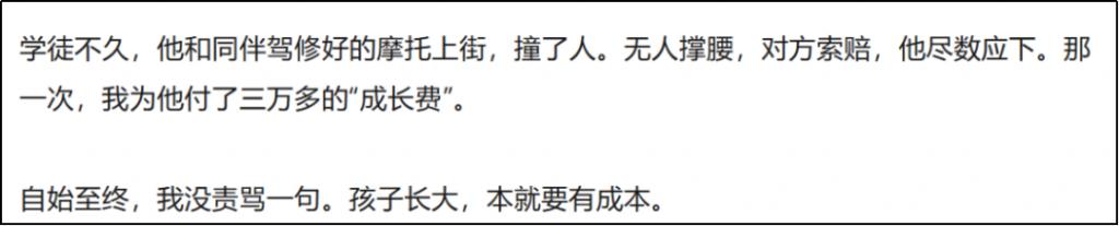 何女士也不止在儿子创业时帮过。之前张雪骑摩托撞了人,要赔 3 万,也是她给付的,二十多年前的 3 万可不是小数目。