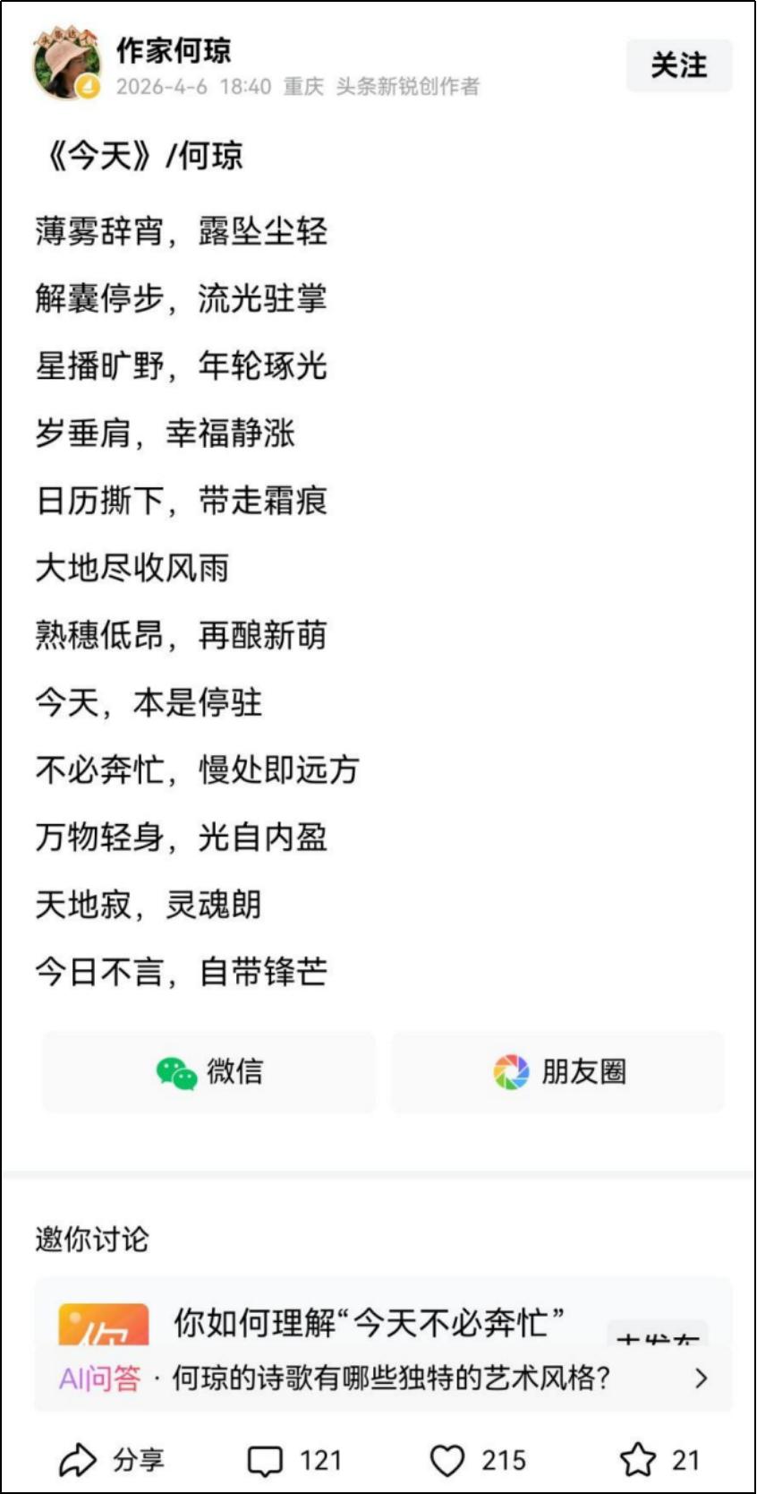 至于为啥应约,是因为何女士之前在这里发过不少作品,这次相当于还人情。
