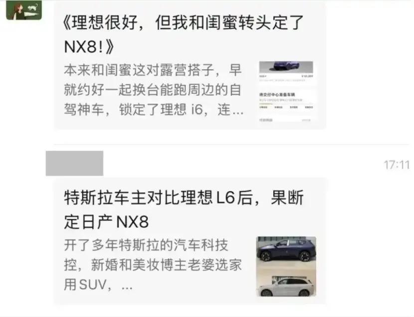 然而,伴随着新车亮相,各大社交平台上突然涌现出大量将 NX8 与理想 L6、理想 i6 进行对比的帖子,且结论惊人一致,即一边倒地推荐 NX8。
