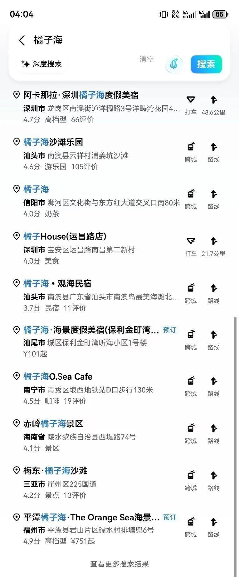 更是有人直接晒出地图软件关键词 " 橘子海 " 搜索结果,能够搜到多个名字带有 " 橘子海 " 的地点。