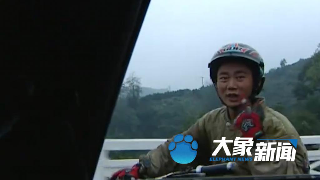 采访那天," 蛋哥 " 穿上专业装备做了现场表演,因为赛道没有提前清扫沙尘,蛋哥不慎中途翻车。小家伙一声没吭,更没掉一滴泪。