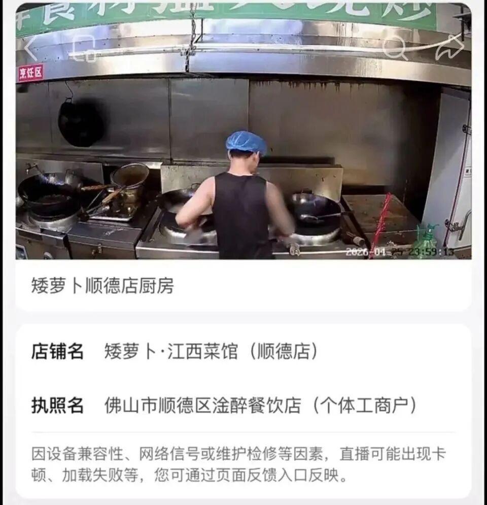 次日晚,冯先生注意到," 矮萝卜 · 江西菜馆(顺德店)" 后厨的视频与 " 年轻 20 年 · 乡下菜馆(顺德店)" 高度相似,只是视角不同。