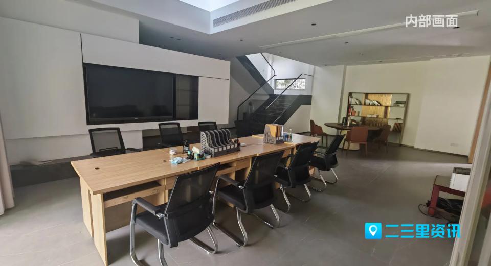 在汪女士的陪同下,记者进入该建筑内部。现场看到,一楼大厅内摆放着办公桌椅,设有电视墙,其余房间还放置了长形桌椅;二楼露台上种有不少绿植,也摆放着供休息使用的桌椅,整个建筑内未发现家用休息床。