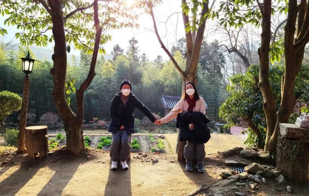 新冠疫情期间拍摄于寺庙树林中,银曙澜和娥丽。(图 / 受访者供图)