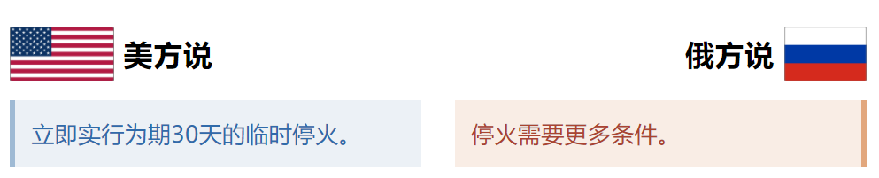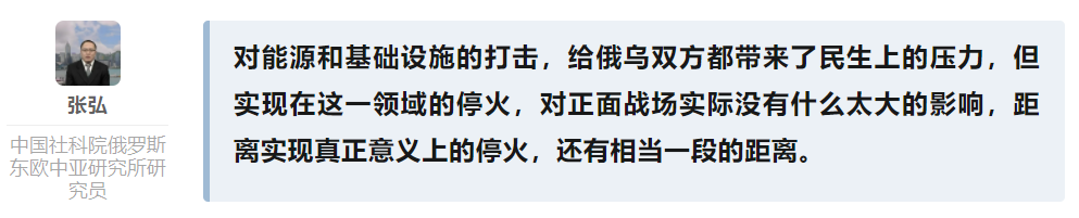 一周前,美乌高级代表团在沙特进行会谈,乌克兰表示愿意接受美国提出的立即实施为期30天临时停火的建议。