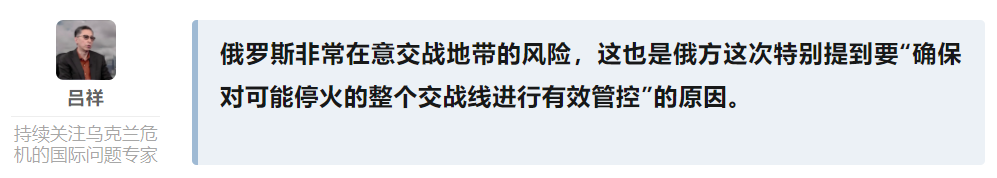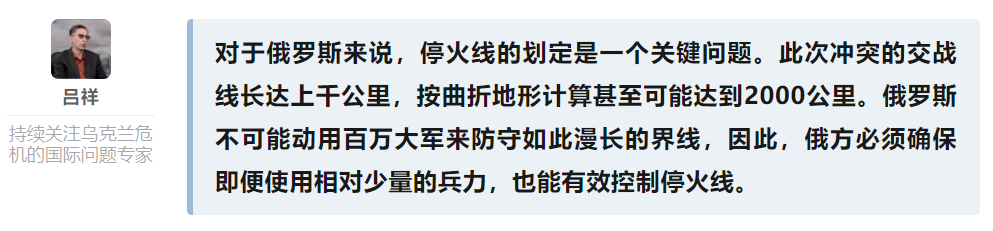 这也就是为何俄方专门指出“可能停火”的原因。不明确交战线,不划定缓冲区,很难做到真正的停火。