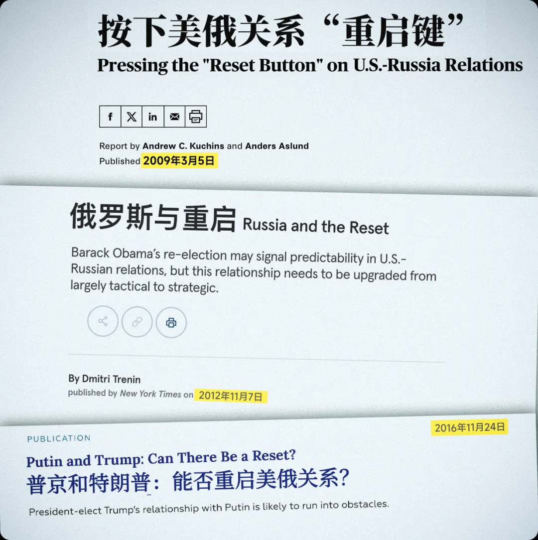 2009年时,美国国务卿和俄罗斯外长就宣布,两国关系要“重启”;