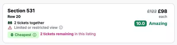 在撰写本文时,酷玩乐队的门票已降至100英镑以下。(图片:VIAGOGO)