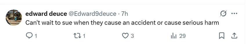 但也有网友对特斯拉的自动驾驶技术提出质疑。因为特斯拉长期以来一直将其 FSD 驾驶辅助系统相关事故的责任归咎于用户,称是车主没准备好接管驾驶。