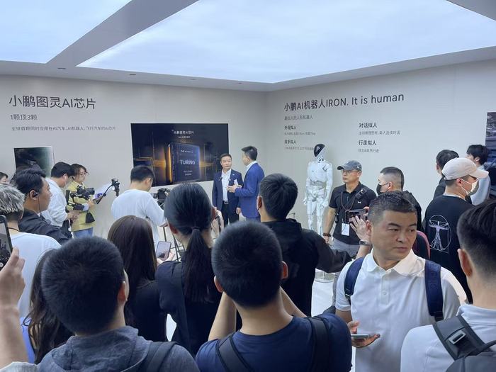 加入上述科技产品对人流的吸引作用明显,不同肤色的参观者汇聚在小鹏汽车展台。一位日本媒体告诉界面新闻,了解到小鹏机器人将会进行车展首秀,她特意按照最早的入馆时间前来,只为抢到前排位置一睹为快。另有一位来自挪威的汽车经销商人士则在小鹏汇天飞行汽车前驻足良久,希望能够进入展品内部观察详情,“这可能代表着我们的出行未来”。