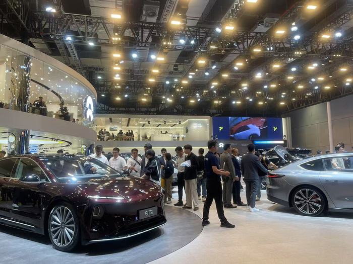 另一个聚集人潮的展台是蔚来汽车。这家公司原本计划为旗下三个品牌分别设置独立展位,但最终选择将最新发布的第三品牌萤火虫和主品牌蔚来同台共展,仅将乐道汽车单独成展。