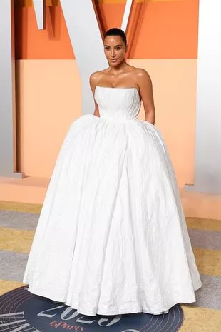 金姆身穿一袭露肩礼服,散发出好莱坞的魅力(图片来源:The Hollywood Reporter via Getty)