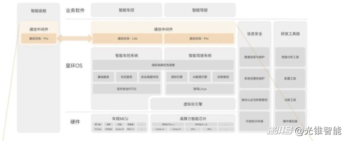 全域操作系统的好处,可以参考理想在车展前夕公布的星环OS的看法。全域系统最重要的价值在于打造智能汽车高效的数据交互通信平台,从而解决汽车中央式电子架构的数据毫秒级内确定性传输和通信主题(topic)与算力、存储空间有限的矛盾。换句话说,就是智能汽车在软件层面上,也要从原来的“分布式”变成中央式的架构。