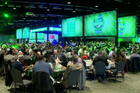 哈士奇足球基金会在一年一度的狗狗早餐上接待了NFL的卢克·威尔逊