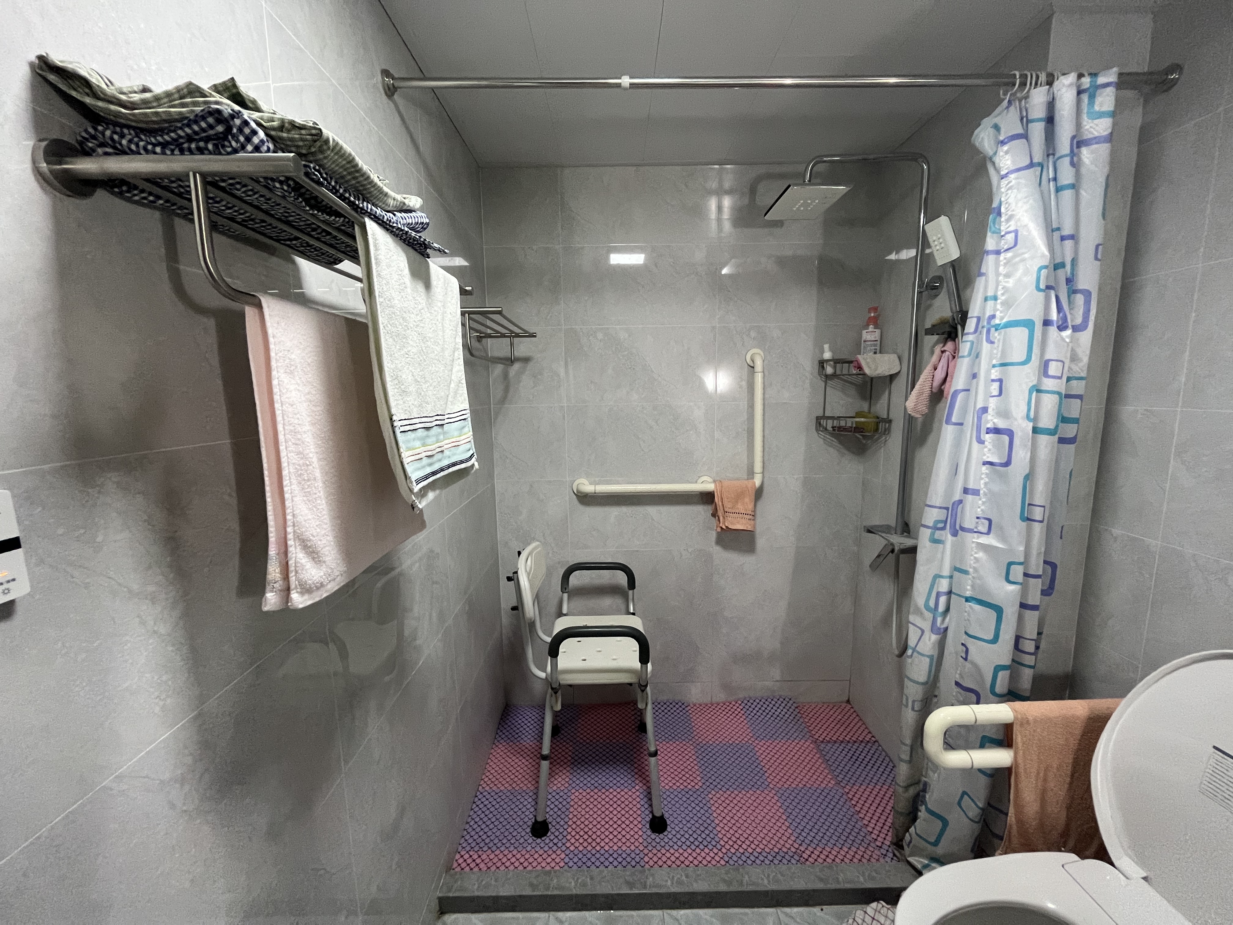 适老化改造后的浴室,老人可以坐着洗澡。澎湃新闻记者 邹娟 图